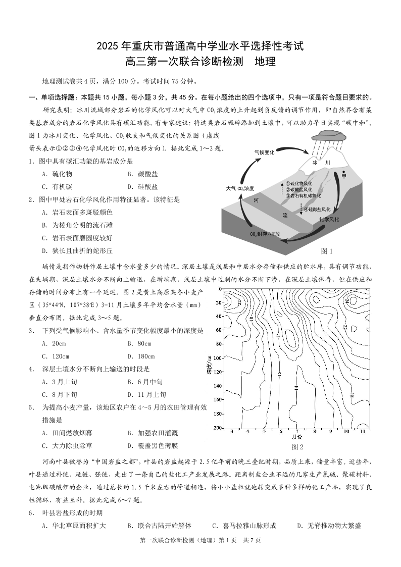 重庆市康德卷2024-2025学年上期高三第一次联合诊断(重庆一诊)地理