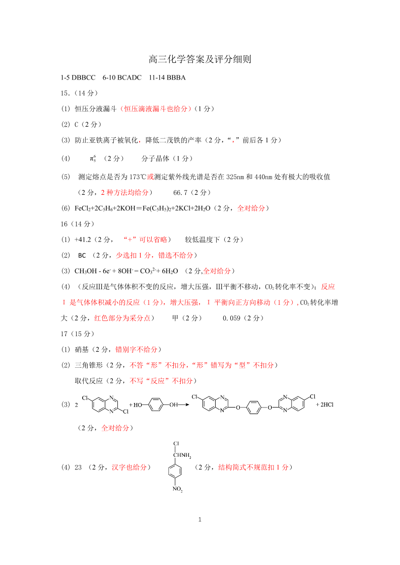 山西省运城市2024-2025学年第一学期1月高三期末调研测试化学答案