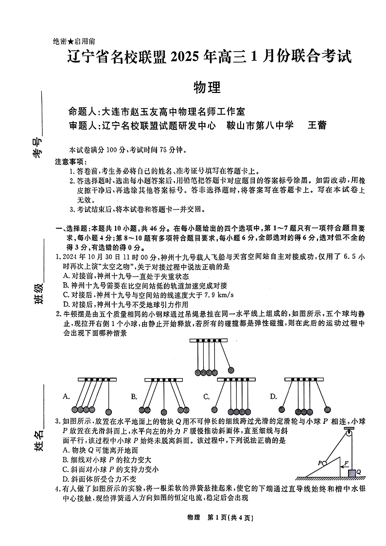 辽宁省名校联盟2024-2025学年上学1月高三联合考试物理