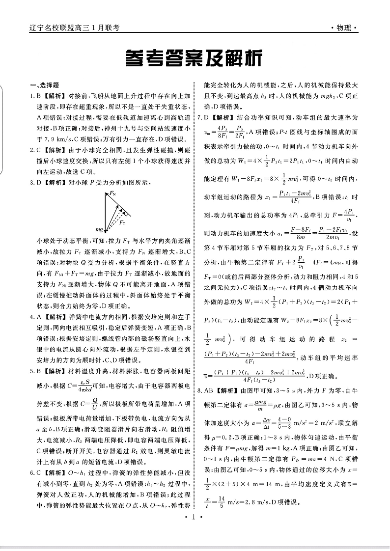 辽宁省名校联盟2024-2025学年上学1月高三联合考试物理答案
