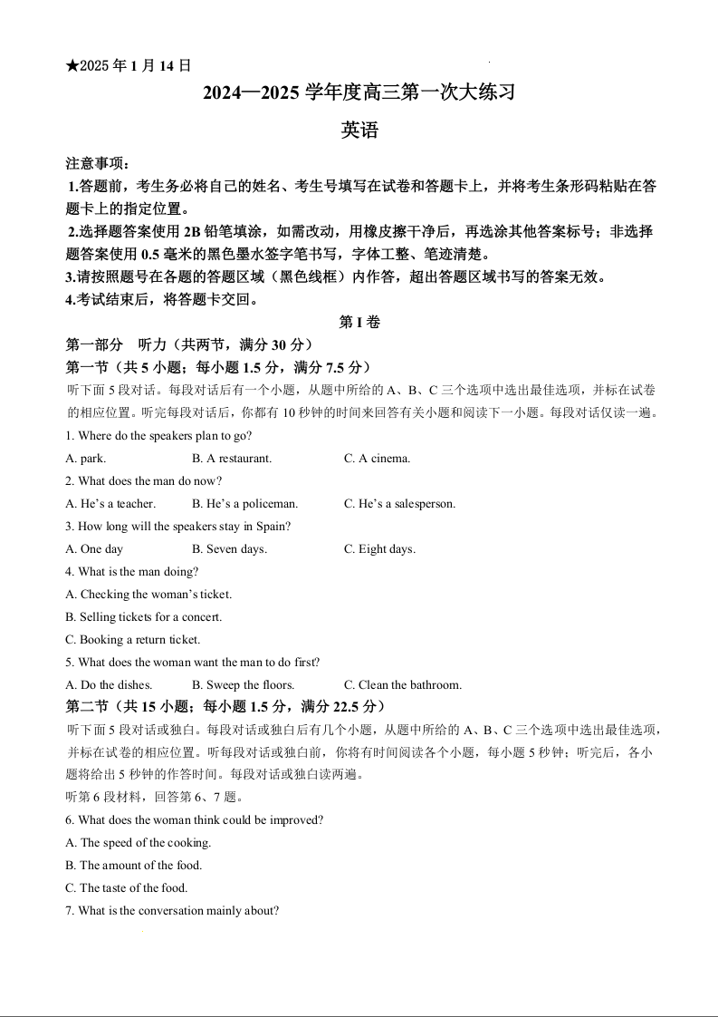 河南省三门峡市2024-2025学年上学期1月高三期末考试英语+答案