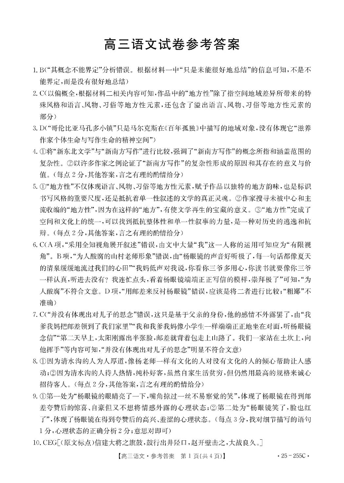 甘肃省区域高中2024-2025学年上学期1月高三联考语文答案