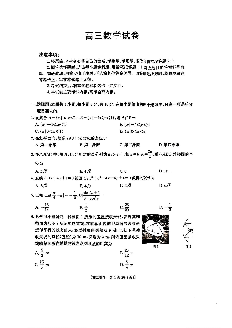 甘肃省区域高中2024-2025学年上学期1月高三联考数学+答案