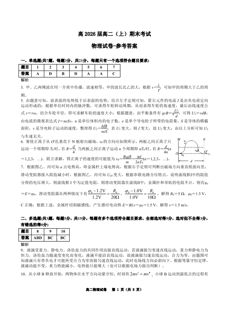 重庆市巴蜀中学教育集团2024-2025学年上学期高二期末考试物理答案