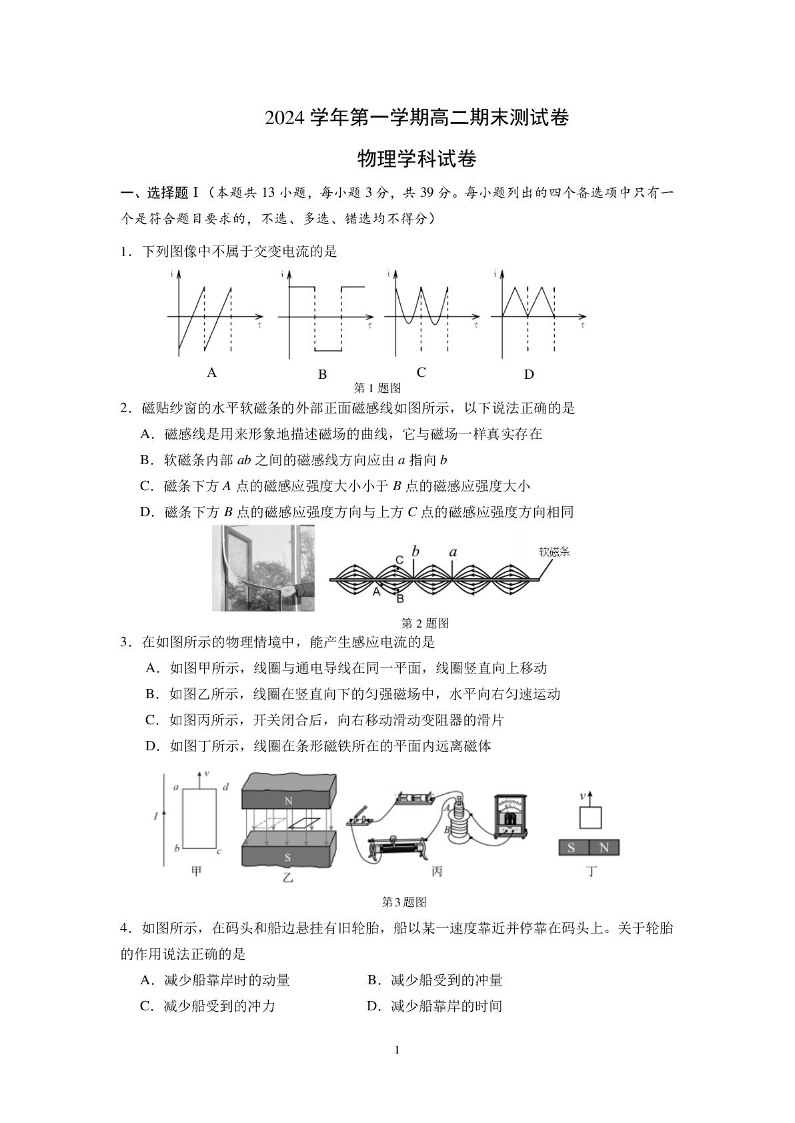 浙江省宁波市慈溪市2024-2025学年上学期1月高二期末考试物理