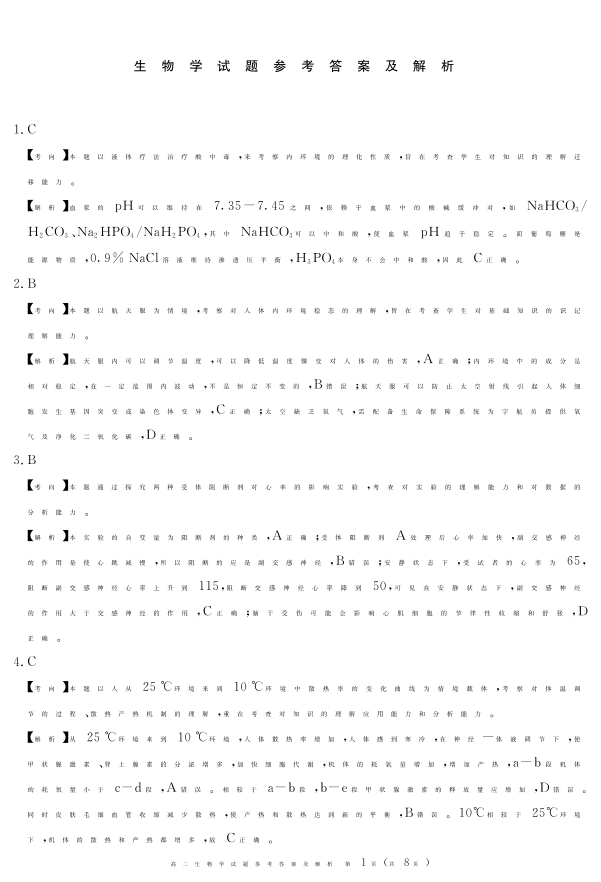 四川省遂宁市2024-2025学年上学期1月高二期末考试生物答案