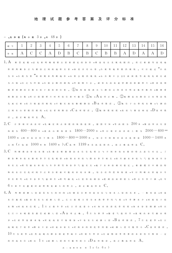 四川省遂宁市2024-2025学年上学期1月高二期末考试地理答案
