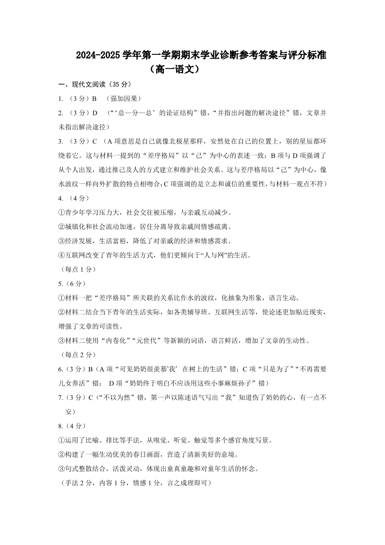 山西省太原市2024-2025学年上学期1月高一期末考试语文答案