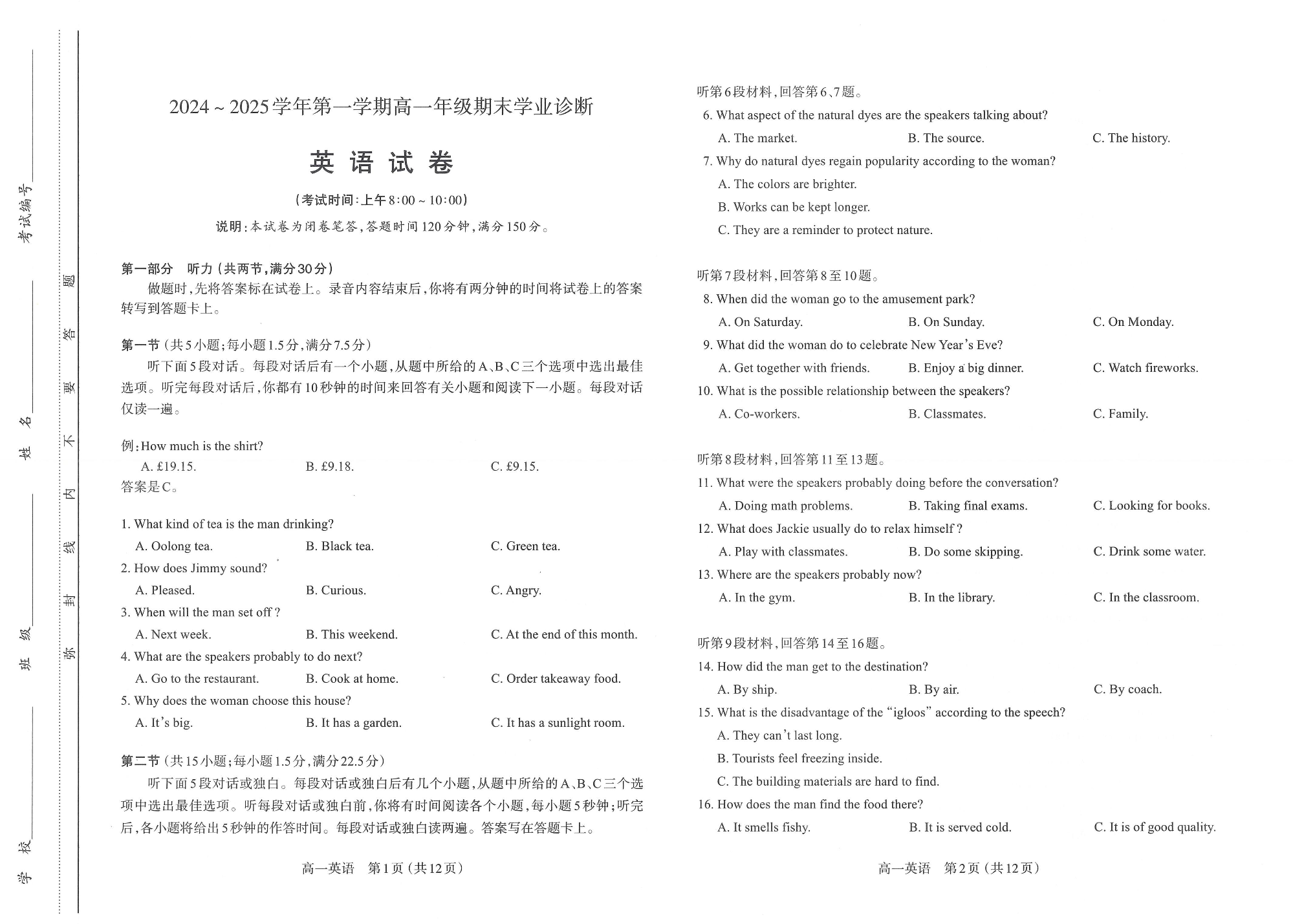 山西省太原市2024-2025学年上学期1月高一期末考试英语