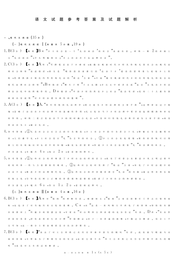 四川省遂宁市2024-2025学年上学期1月高一期末考试语文答案