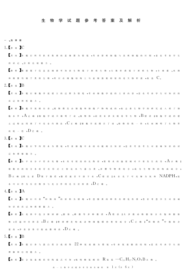 四川省遂宁市2024-2025学年上学期1月高一期末考试生物答案