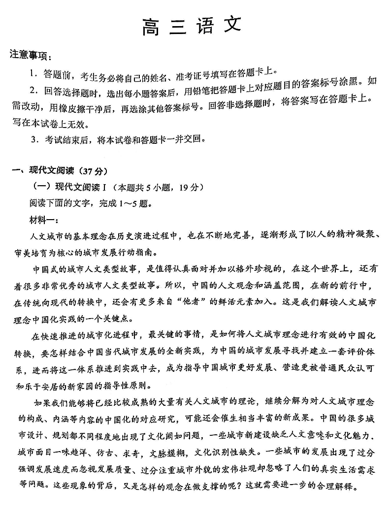 福建省泉州市2024-2025学年上学期高中毕业班质量监测(二)语文