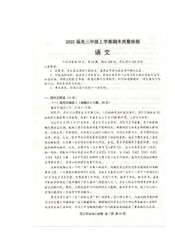湖北省武汉市武昌区2024-2025学年上学期1月高三期末质量检测语文