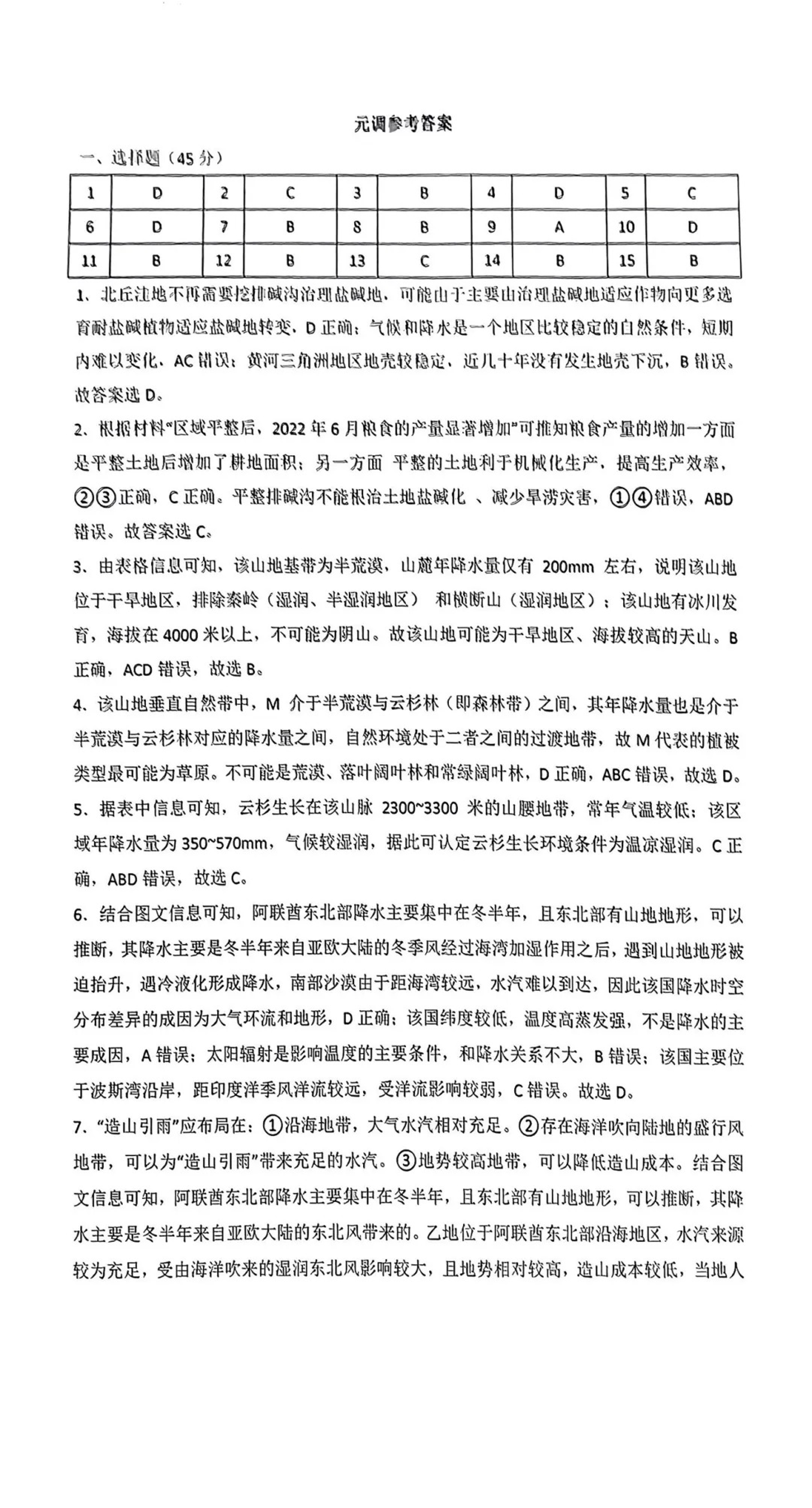 湖北省武汉市武昌区2024-2025学年上学期1月高三期末质量检测地理答案