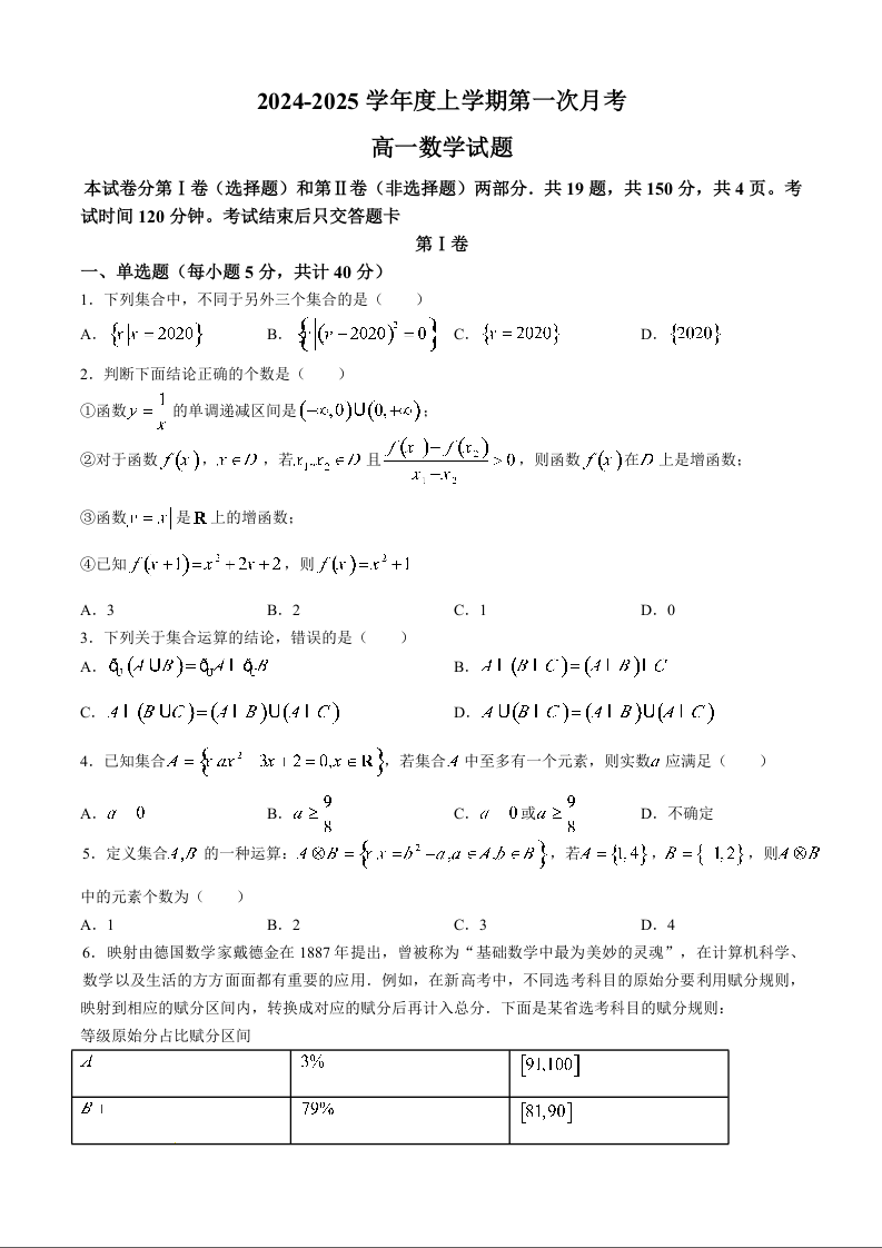 吉林省部分学校2024-2025学年度上学期第一次月考数学+答案