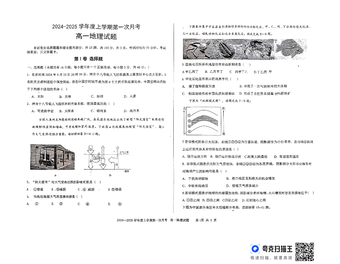 吉林省部分学校2024-2025学年度上学期第一次月考地理