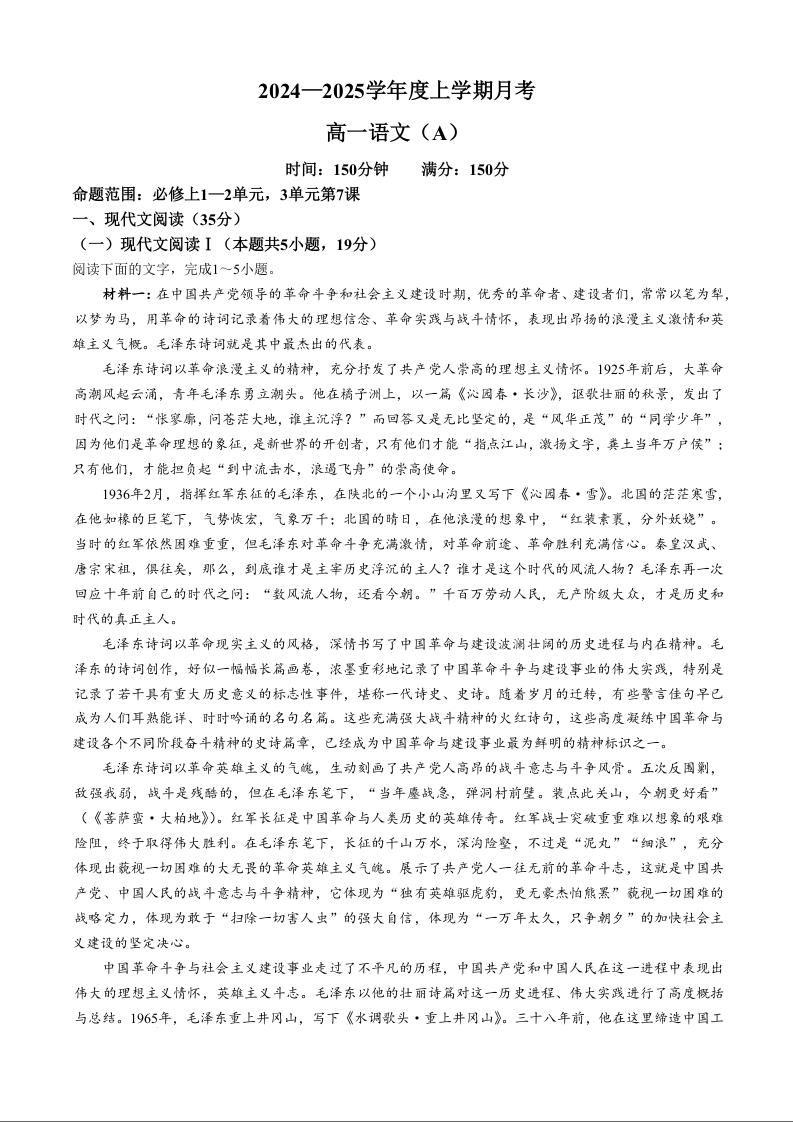 辽宁省辽东南协作体2024—2025学年度上学期月考语文+答案
