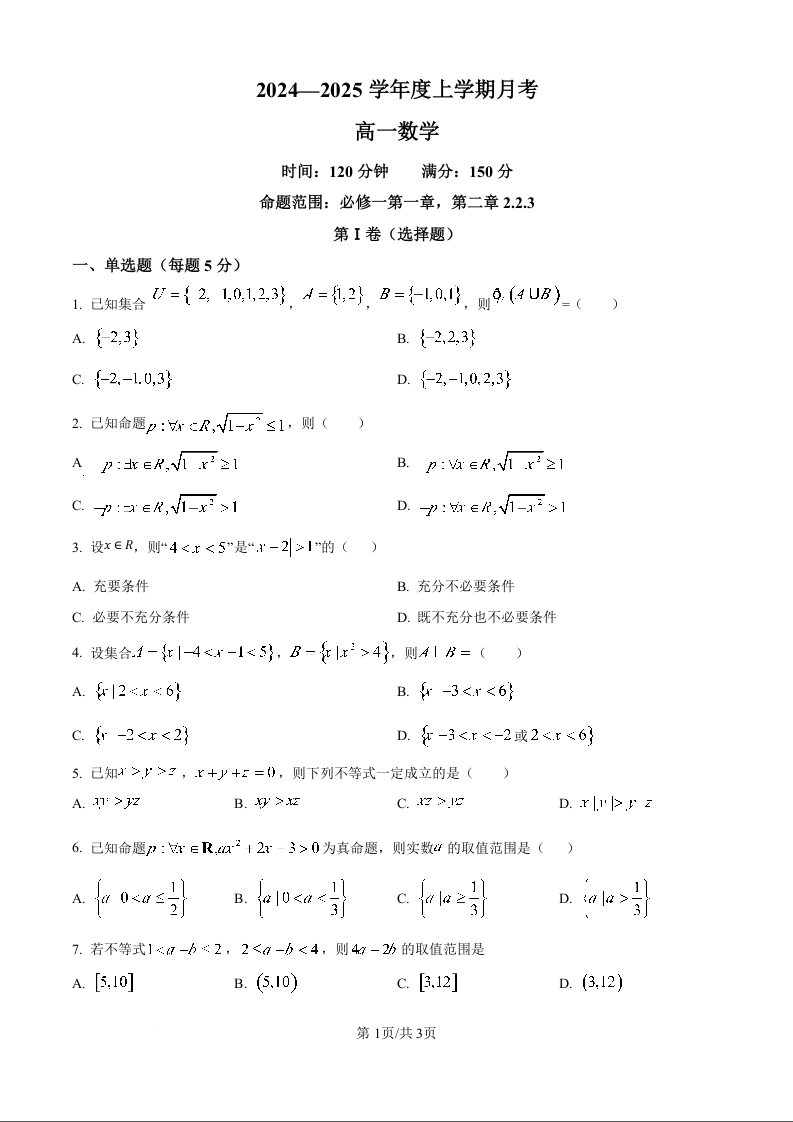 辽宁省辽东南协作体2024—2025学年度上学期月考数学(原卷版)