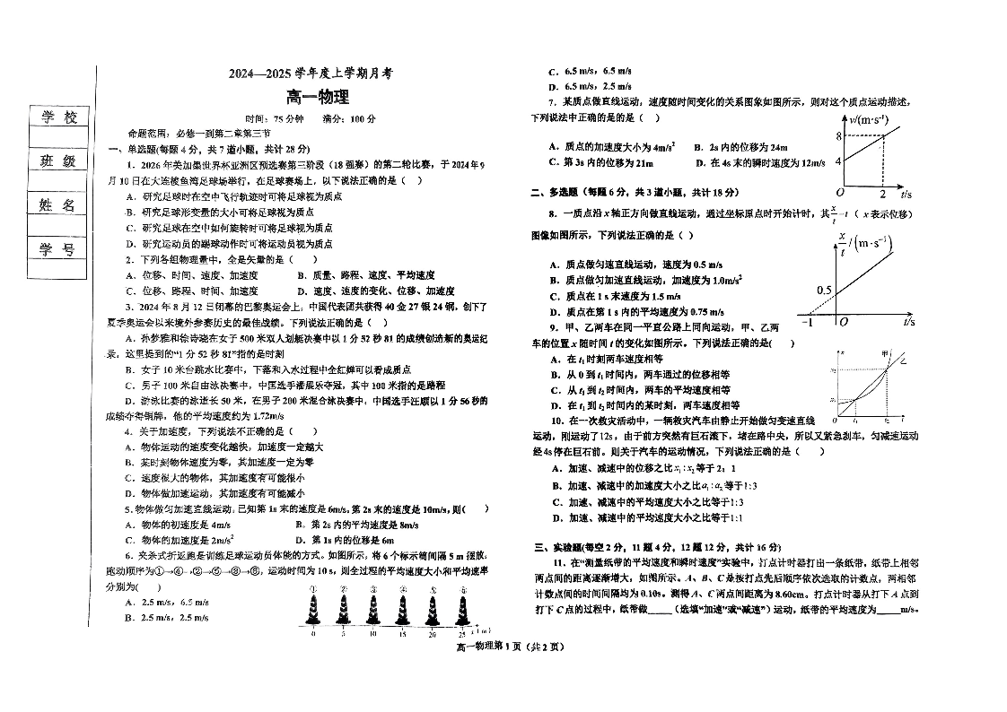 辽宁省辽东南协作体2024—2025学年度上学期月考物理