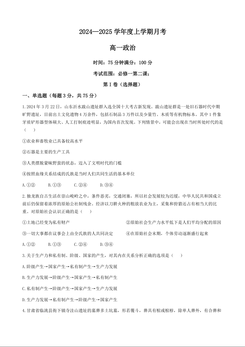 辽宁省辽东南协作体2024—2025学年度上学期月考政治+答案