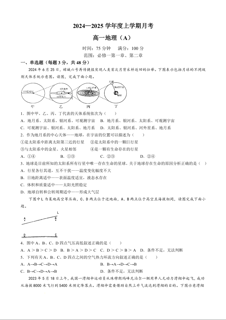 辽宁省辽东南协作体2024—2025学年度上学期月考地理+答案