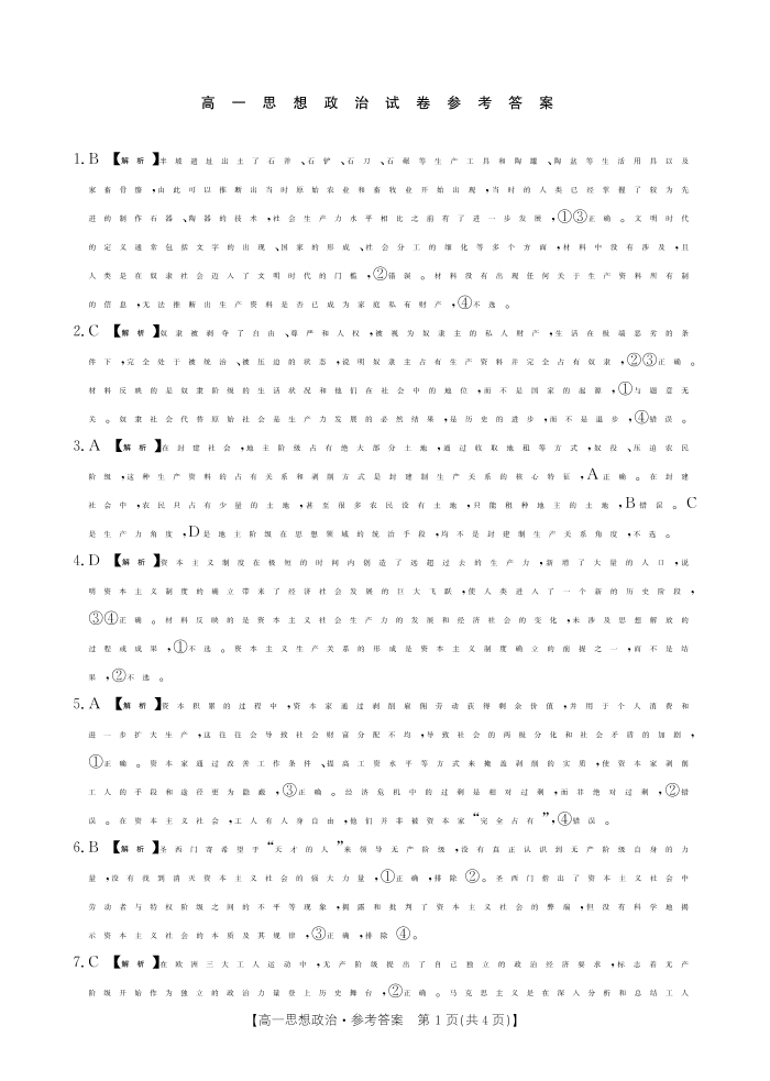 辽宁省普通高中2024-2025学年高一上学期10月月考政治答案