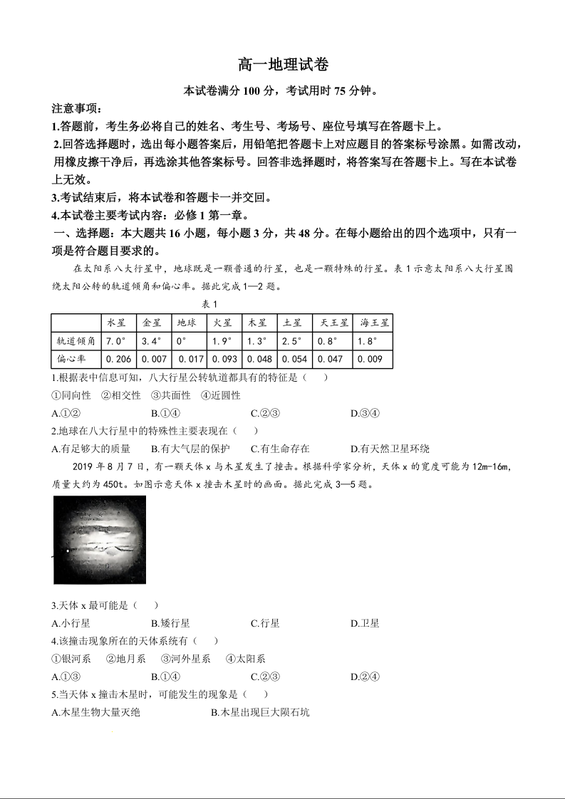 辽宁省普通高中2024-2025学年高一上学期10月月考地理