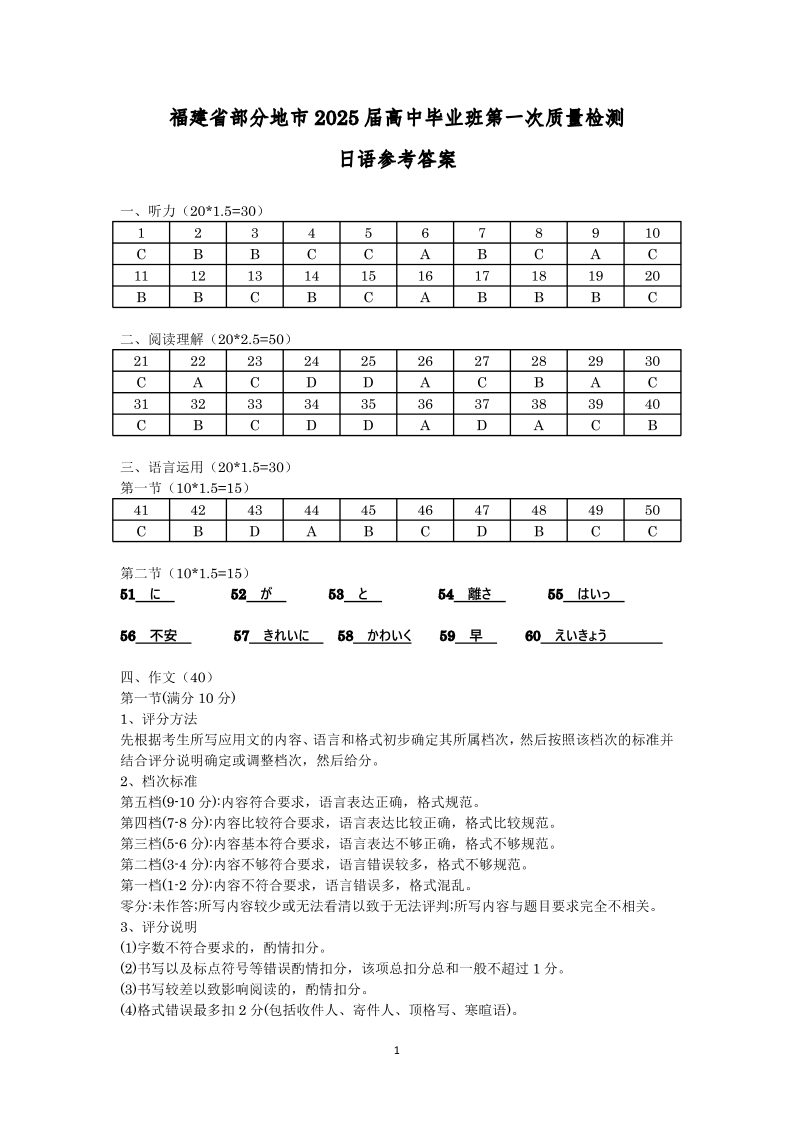 福建省六市2025届高中毕业班第一次质量检测(一模)日语答案