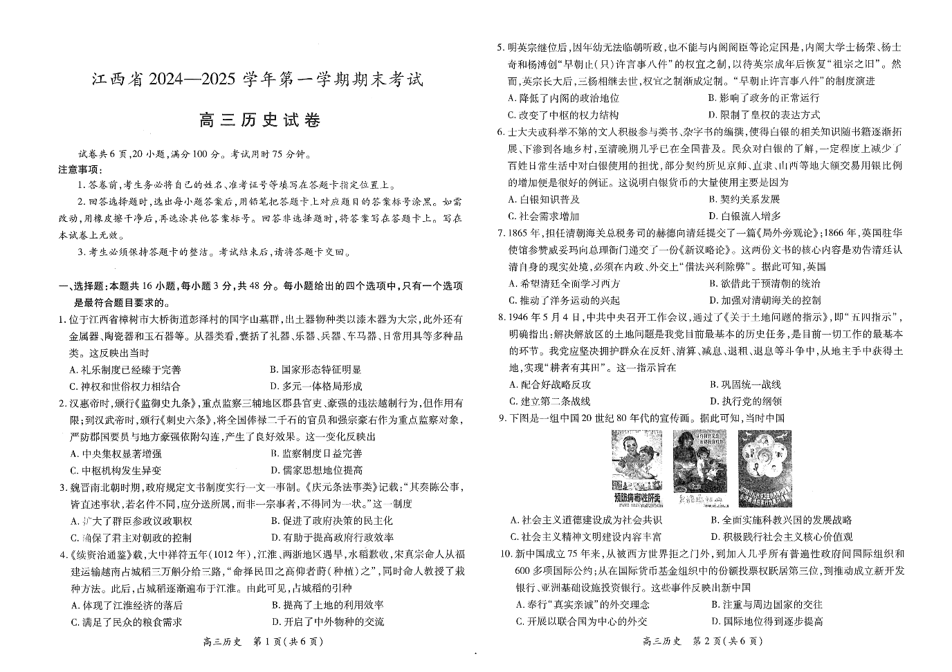 江西省部分高中2025届高三上学期1月期末教学质量检测历史