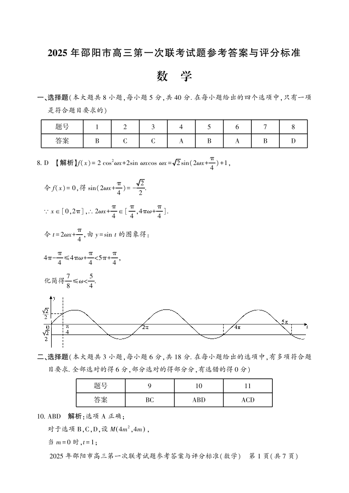 湖南省邵阳市2025届高三上学期第一次联考(一模)数学答案