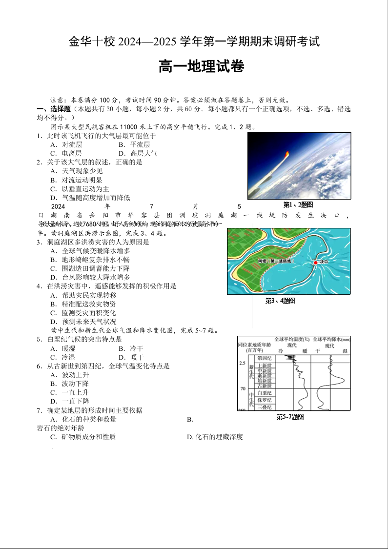 浙江省金华十校2024-2025学年上学期1月高一期末调研考试地理+答案
