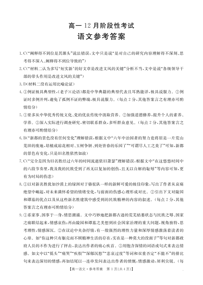 广西省区域高中2024-2025学年上学期12月高一阶段性考试语文答案