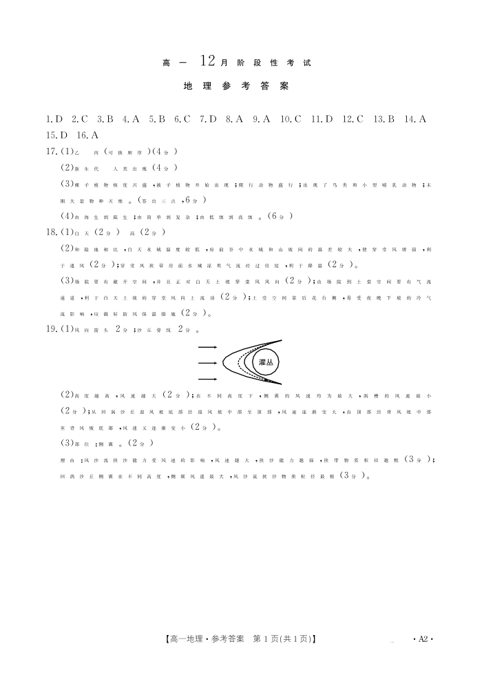 广西省区域高中2024-2025学年上学期12月高一阶段性考试地理答案