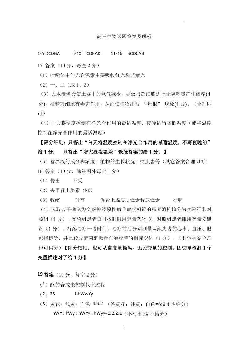 山西省吕梁市2025届高三上学期1月期末调研考试生物答案