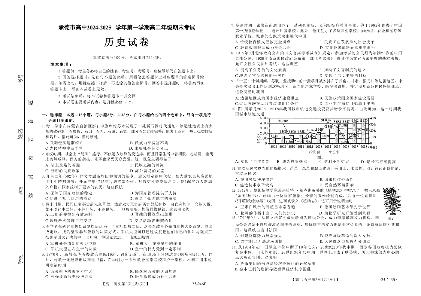 河北省承德市2024-2025学年高二上学期期末考试历史试卷