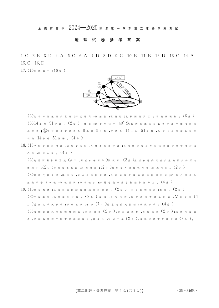 河北省承德市2024-2025学年上学期1月高二期末考试地理答案