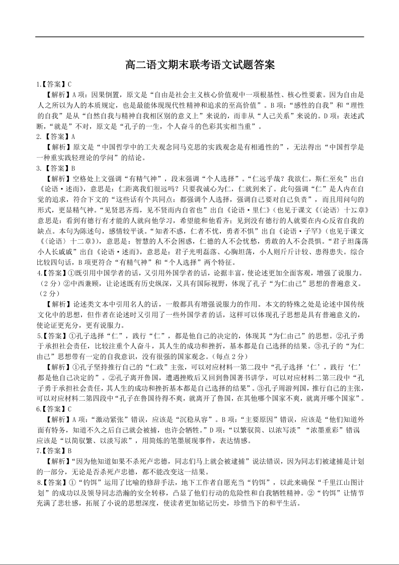 湖北省区域高中2024-2025学年上学期1月高二期末考试语文答案