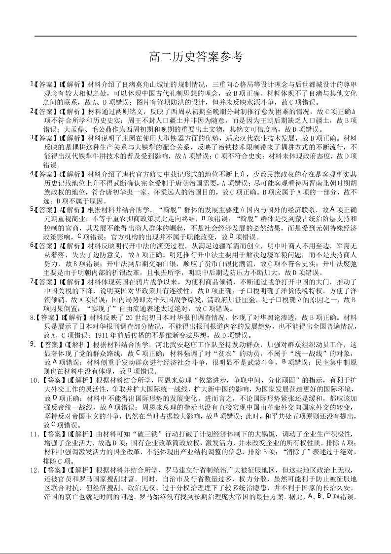 湖北省区域高中2024-2025学年上学期1月高二期末考试历史答案