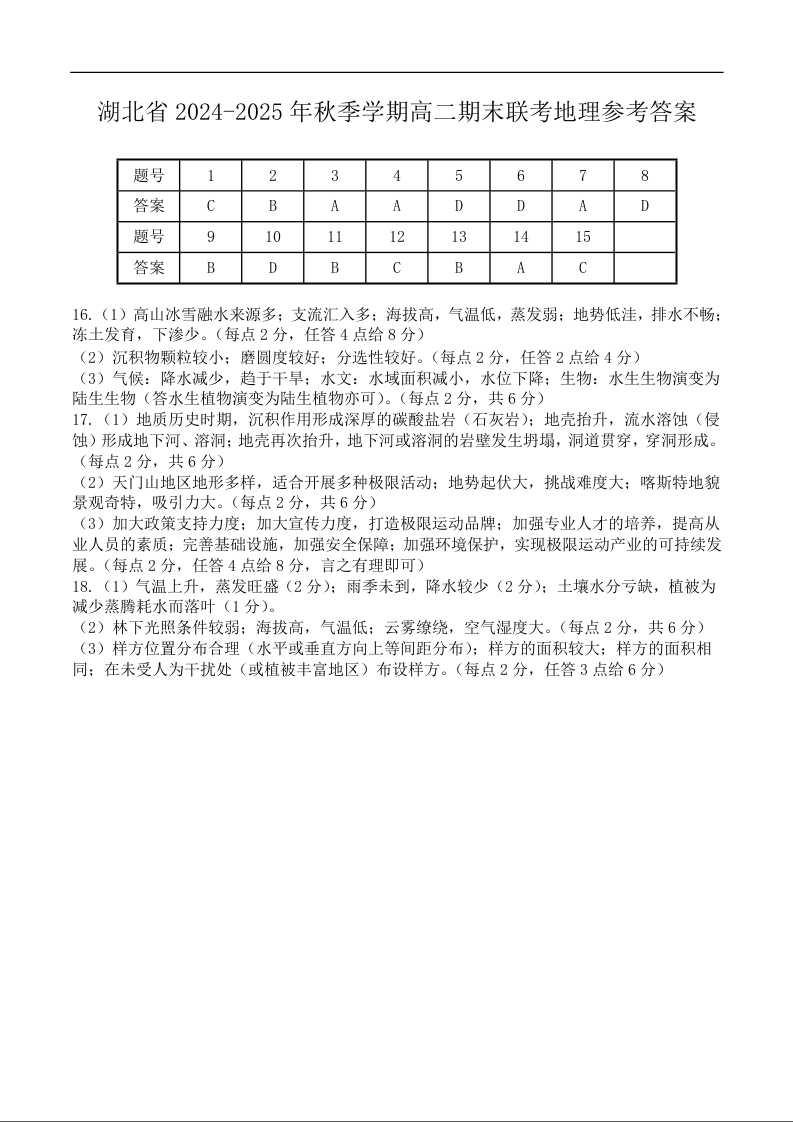 湖北省区域高中2024-2025学年上学期1月高二期末考试地理答案