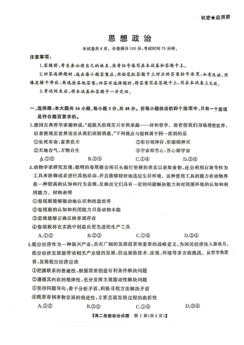 湖南省怀化市2024-2025学年上学期1月高二期末质量检测政治+答案