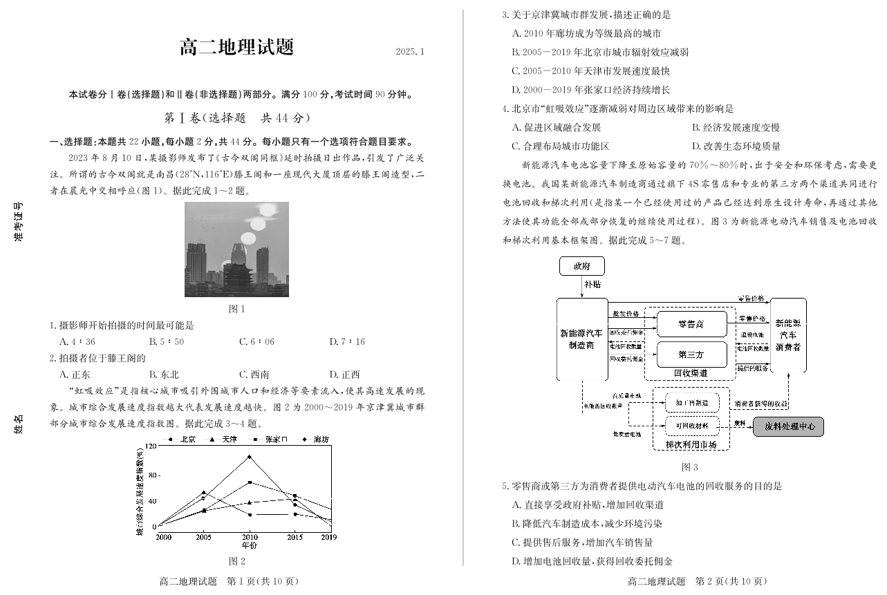 山东省德州市2024-2025学年上学期1月高二期末联考地理+答案