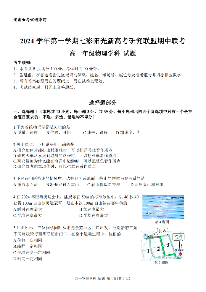 浙江2024学年第一学期浙江“七彩阳光”新高考研究联盟期中联考物理