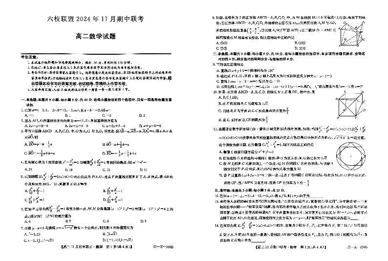 河北省保定市六校联盟2024年11月期中联考数学