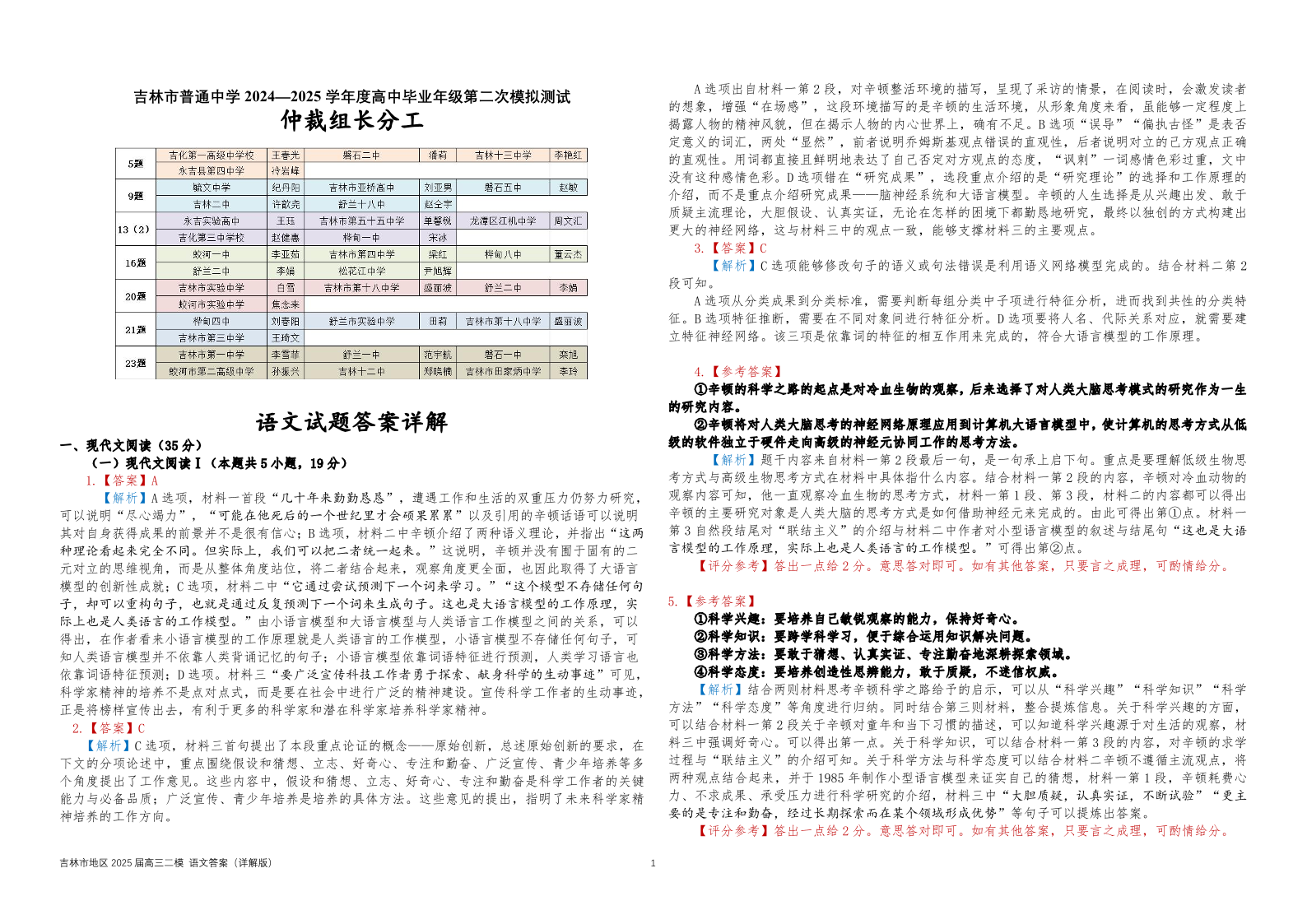 吉林省普通中学2024-2025学年上学期高三第二次调研测试语文答案