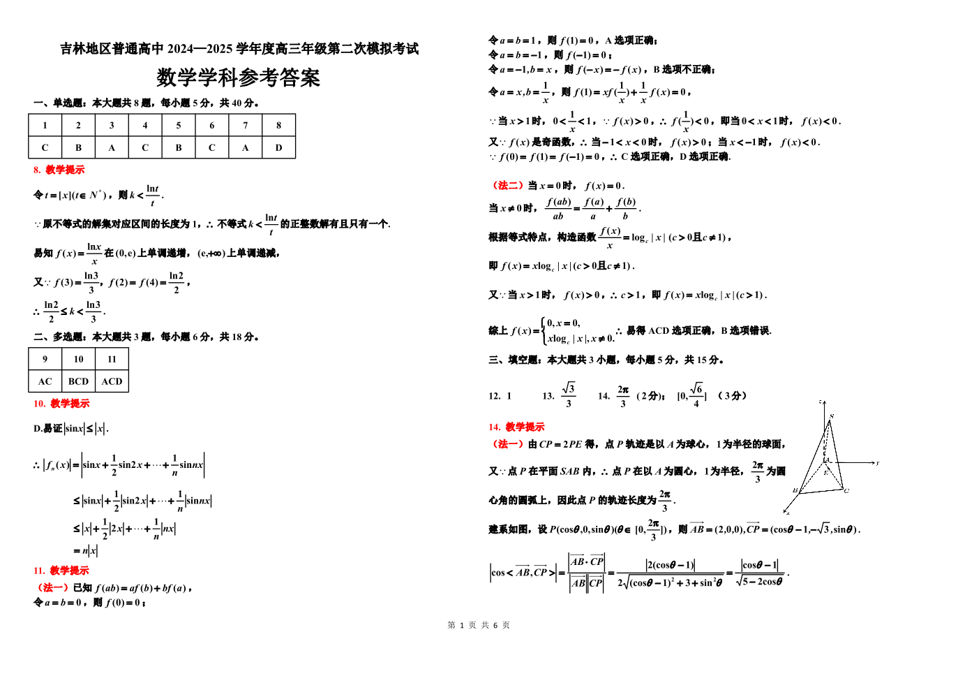 吉林省普通中学2024-2025学年上学期高三第二次调研测试数学答案