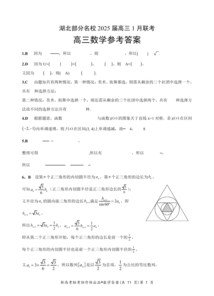 湖北省部分名校2024-2025 学年上学期1月高三期末联考数学答案