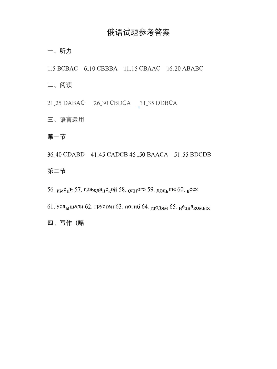 湖北省部分名校2024-2025 学年上学期1月高三期末联考俄语答案