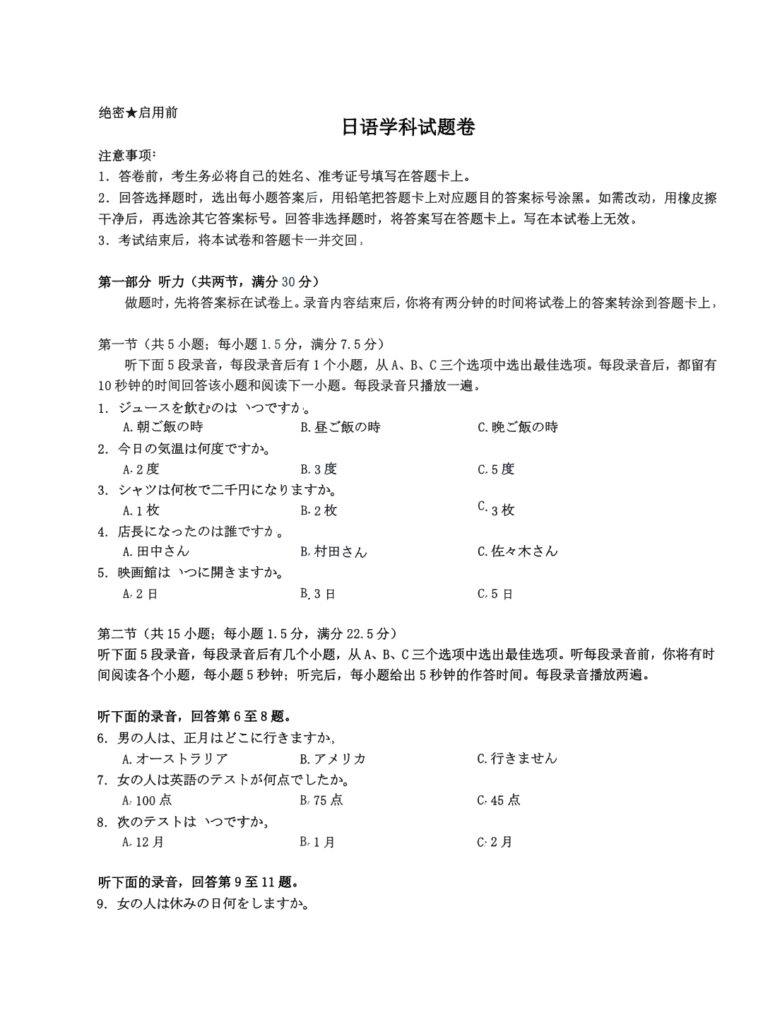 湖北省部分名校2024-2025 学年上学期1月高三期末联考日语
