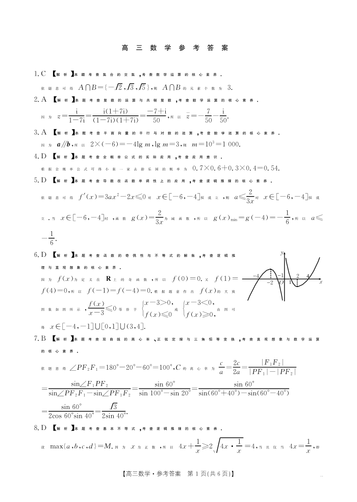 广东省深圳市2024-2025学年上学期1月高三期末考试数学答案