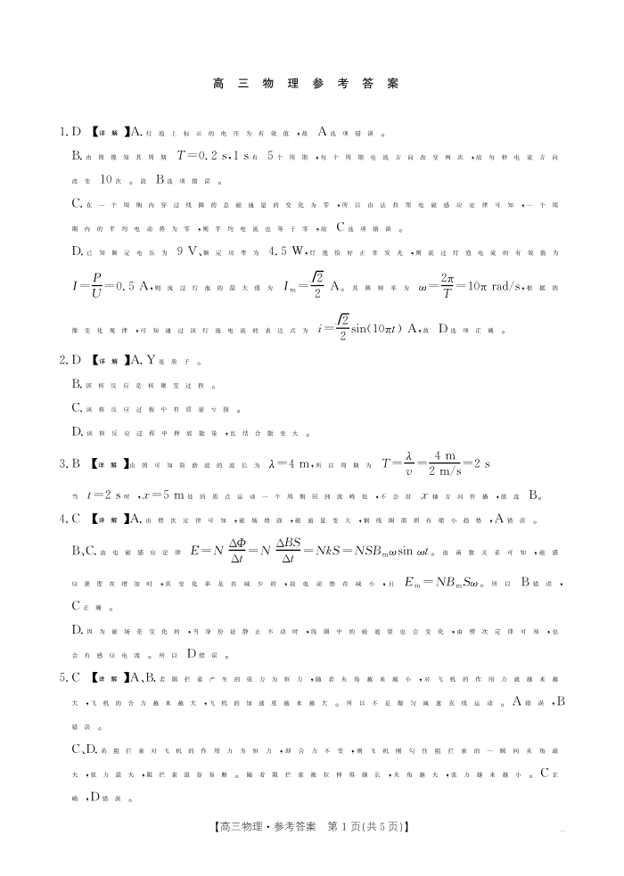 广东省深圳市2024-2025学年上学期1月高三期末考试物理答案